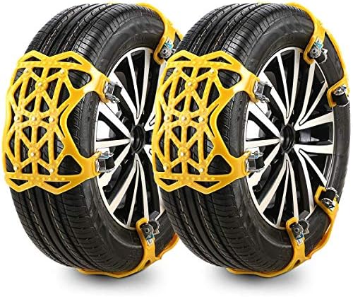 タイヤチェーン Amouhom 非金属 自動車タイヤ滑り止めチェーン 雪道 凍結 砂道 悪路 サイズ調節可能 165 265mm対応 ジャッキアップ不要 取り付けやすい 防災応急用 タイヤカバー スノーチェーン 黄色 6本入 Isju Gob Mx